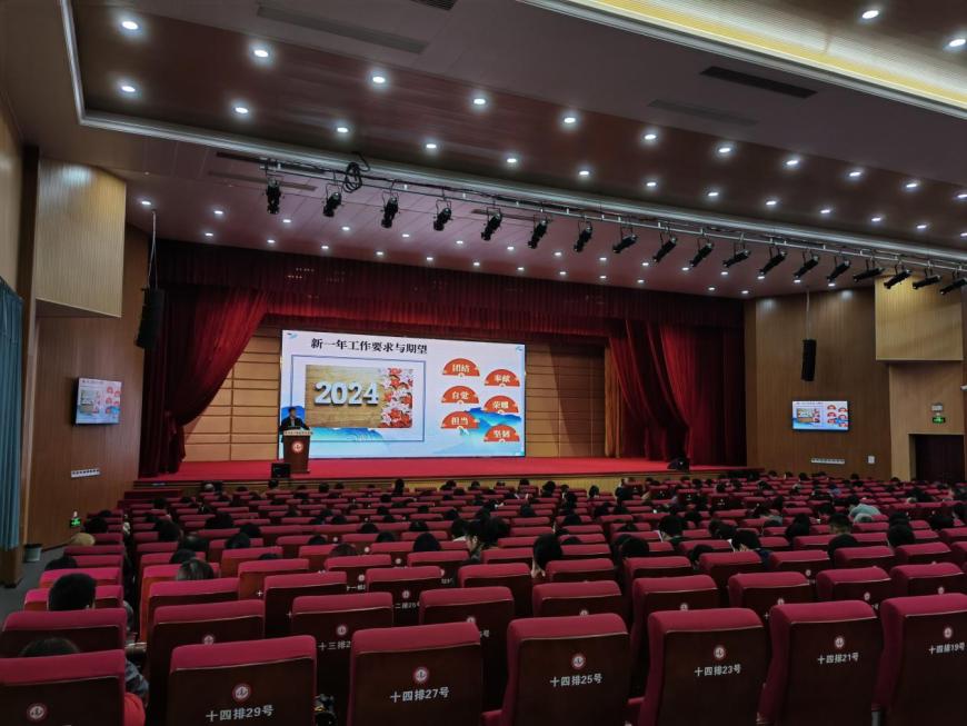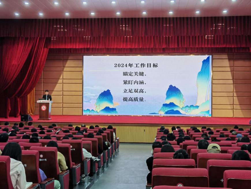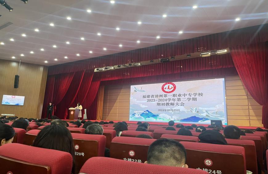 龙腾启新篇,奋楫向未来。伴随着祥龙迎春的脚步,充满憧憬与希望的新学期如约而至。为了明确新学期的发展目标,并科学部署开学准备工作,确保新学期各项工作有序开展,2024年2月23日下午,漳州一职校在学校大礼堂召开2023-2024学年第二学期期初教师大会,本次会议由学校党委委员、办公室主任李燕主持。