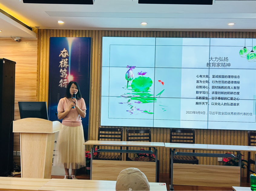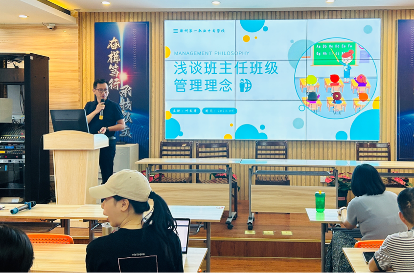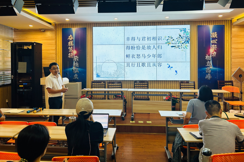 沈湖拱主任以“建构认同、高端融入、建立自觉、保持敬畏、开心工作”与新老师进行教学工作漫谈。他以墨家职业教育启蒙——兼士思想浅谈入手,为新老师分享了当代职业教育的现状、理念以及未来的展望。此外,还从教学工作的首要任务出发,围绕听评课活动、期初期末工作、日常教学活动和学业水平考试等四个方面,引导新教师迅速熟悉各项教学常规,跟新教师们分享“站稳讲台”的一些关键细节。同时也向新老师分享了一些优秀教师日常教学和教学能力竞赛的相关案例,鼓励新老师积极参与教育教学研究及教学能力竞赛,不断提高自身教育教学能力。
