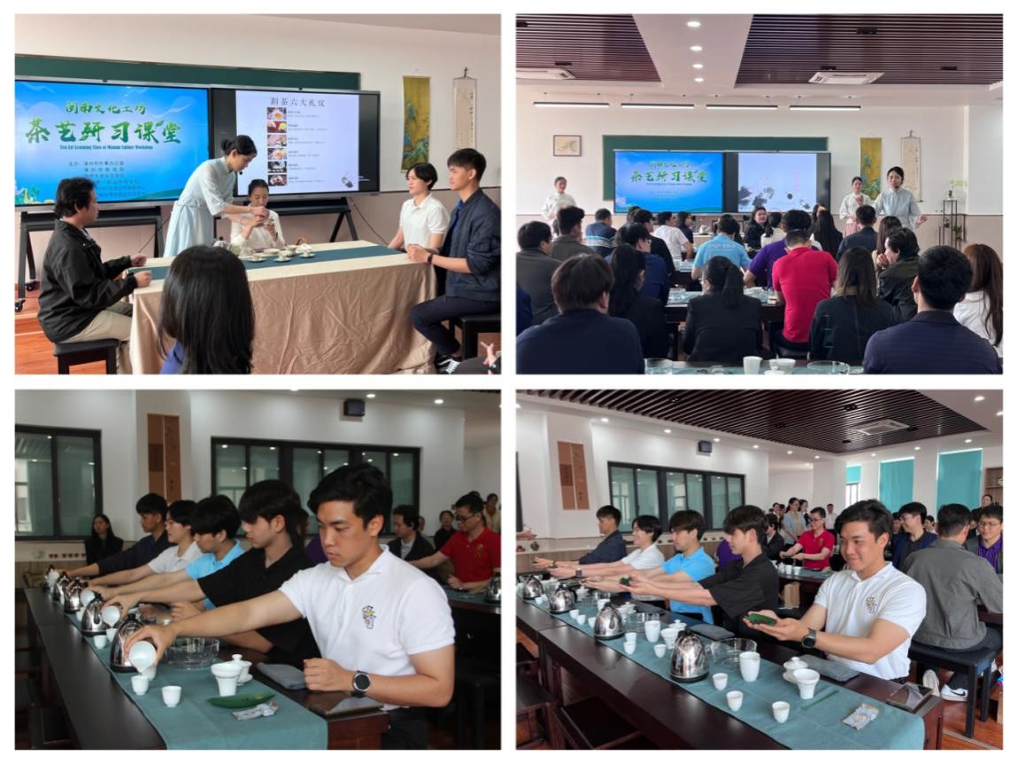 在茶艺课堂上,戴佳辉老师以“闽南茶韵”为主题,介绍博大精深的茶文化,生动演绎中国茶文化内涵。指导留学生茶道、冲泡、品茶技法。
