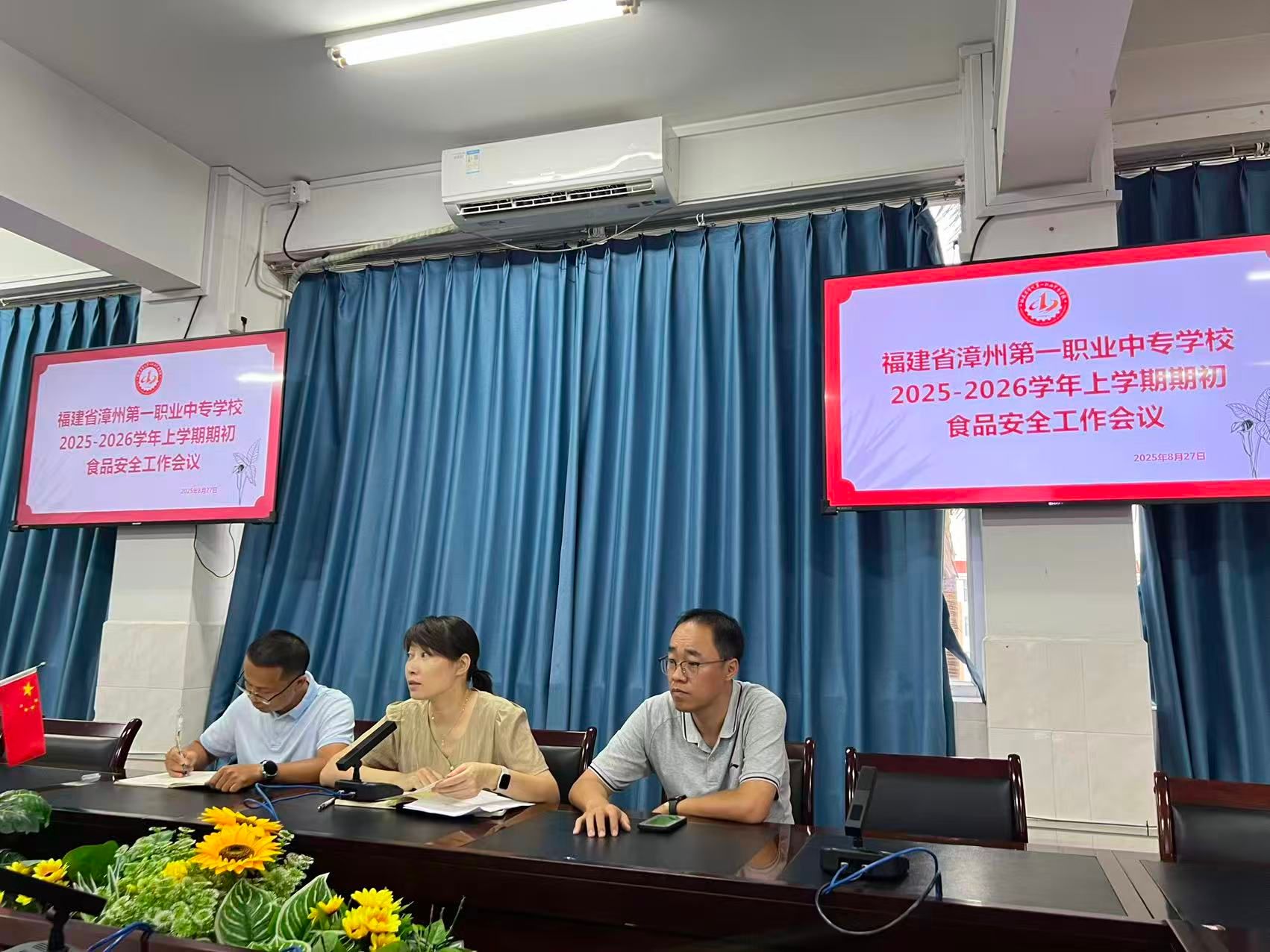 金秋送爽,丹桂飘香,新学期如约而至。为切实保障全体师生用餐安全,为进一步强化学校食品安全管理,8月27日,漳州一职校开展2025—2026学年上学期学期初食品安全工作会议。会议由总务处副主任杨欢主持,李燕副校长出席会议并发表讲话,总务处林世雄老师、各食堂安全员、食堂安全管理员和食堂委托经营方代表等参会。
