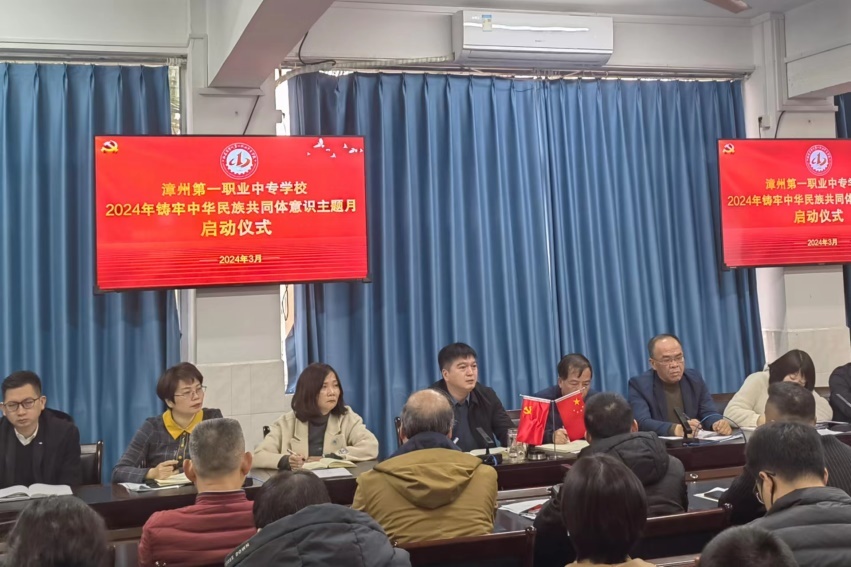 3月份是福建省“铸牢中华民族共同体意识主题月”。3月4日上午,漳州一职校启动2024年“铸牢中华民族共同体意识主题月”宣传活动,吹响以铸牢中华民族共同体意识为主线,全面推进一职民族团结进步的号角。校党委书记、...
