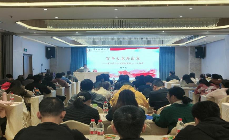 4月8日下午3时,闽南师范大学马克思主义学院院长陈再生为全体老师做了题为《百年大党再出发——学习宣传党的二十大精神》的讲座。陈再生教授带领大家回顾了党的百年奋斗历程,并深入分析了百年大党为何再出发,最后详细解读了党的二十大报告,使全体老师深入学习领会了党的二十大精神。