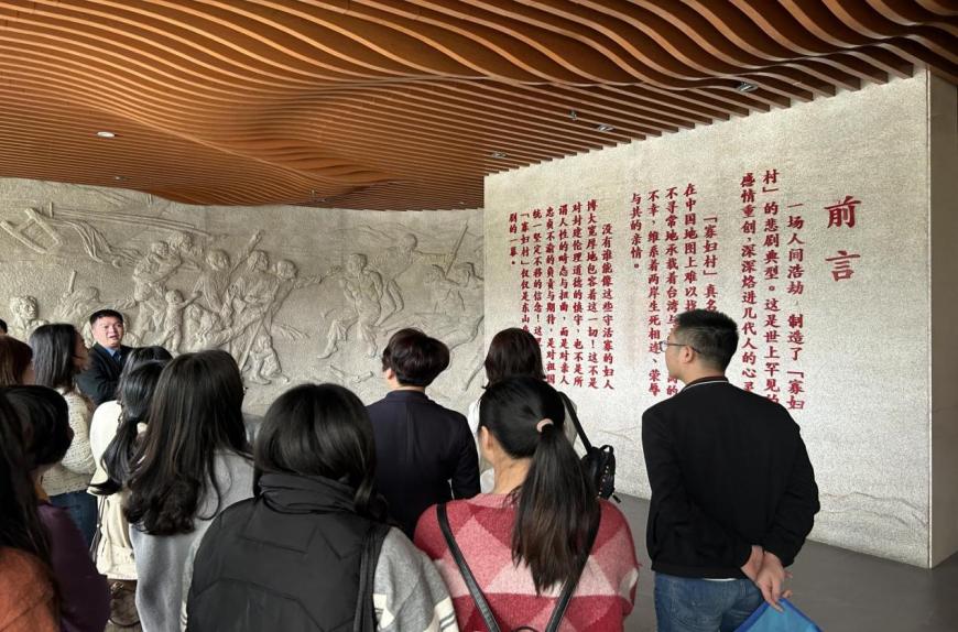讲座结束后,全体老师前往寡妇村展览馆进行现场教学,丰富的实物、图片和影像史料,真实地展现了那91位妇女所经历的痛苦,她们的坚守显示出了对亲人忠贞不渝的感情,也显示出了对祖国统一坚定不移的信念。寡妇村的历史承载了台湾与大陆分离的不幸,也维系着两岸生死相连的亲情。