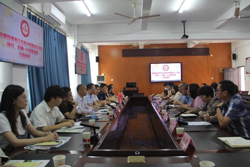 会后,洪副校长一行在我校副校长邱凯军、杨珊莹、余佩芳等领导的陪同下参观了学校校园,并深入走访了各个实训室。双方分组开展交流研讨活动,就学校思政课教学教研的内容、省学考备考上的经验等方面进行深入的交流与研讨。