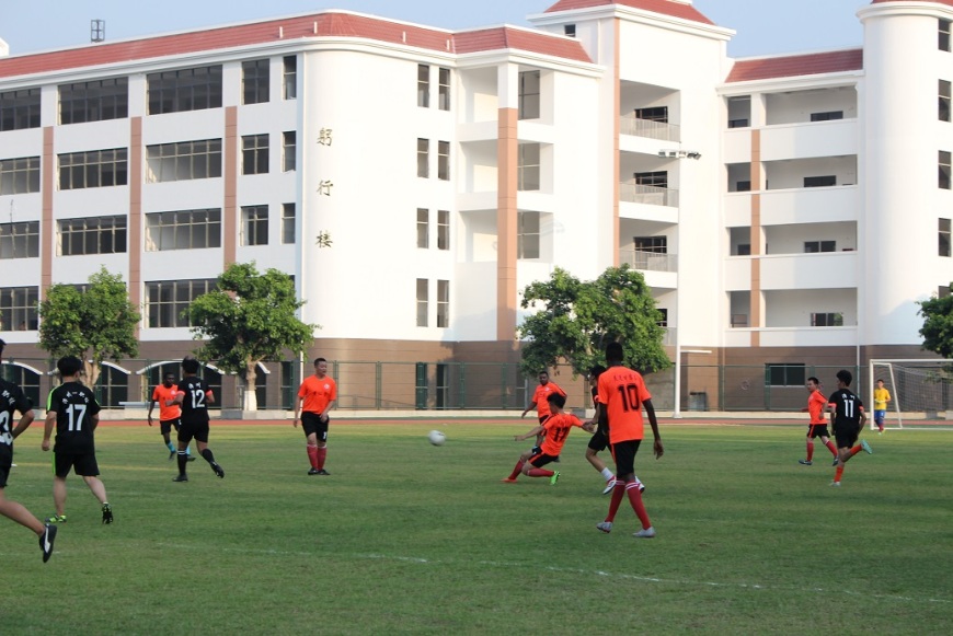 为响应国家体育总局、教育部联合发起的全面开展青少年校园足球活动安排,通过足球活动,让学生获得运动快乐,增强学生体质,培养团队意识和拼搏精神,为学生提供展示并发展才能的舞台,全面提高学校足球运动水平。2018年5月13日下午,漳州一职校诚邀漳州星锐足球队在学校绿茵足球场举行友谊赛。同时邀请了星锐足球队的外国籍球员Babucarr Touray (赛内加尔)、Stallone (喀麦隆)、 Nymar jr (冈比亚)、Arno (老挝)等队员对学校足球队进行交流指导。