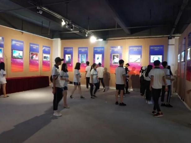 师生们在园区还观看海峡两岸书画展、中国沙画艺术展厅。