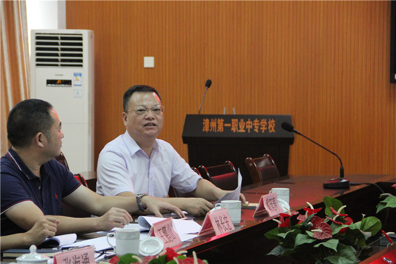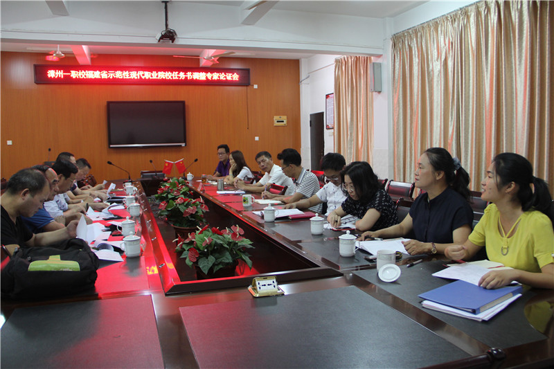 根据2018年福建省示范性现代职业院校项目建设任务书调整申报文件精神,为了进一步明晰项目建设思路,7月18日上午,漳州一职校在科学楼四楼会议室召开了2018年福建省示范性现代职业院校项目建设任务书调整专家论证会。本次论证会邀请到漳州职业技术学院副院长戴延寿副教授、漳州理工职业学院副校长张海通教授、南靖万利达科技有限公司副总经理林长宏、漳州职业技术学院系书记叶凯教授、万利达集团党委副书记王鹏山、漳州城市职业技术学院张志友副教授组成专家组。