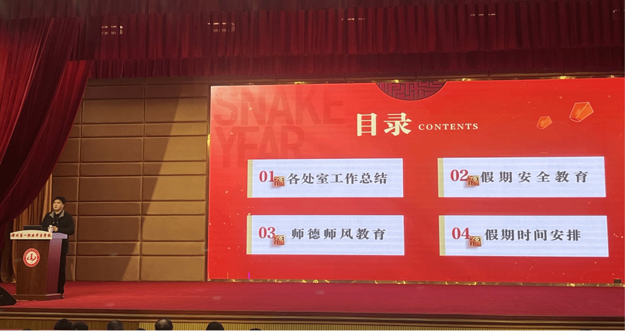 新春佳节来临之际,学校党委书记、校长王少全作了节前廉政教育,他要求全体教职工遵守相关规定,以身作则,增强自律意识,弘扬新风正气。王少全校长还就假期安全稳定作出强调,以扁鹊大哥“治未病”为寓突出防患于未然的重要性,要求全体教职工要切实提高安全意识、防范意识和法纪意识,离校前做好办公区域安全排查,落实“人防、物防、技防”措施,自觉遵守各项法律法规,注意家庭用气、用火、用电安全,保持健康生活方式,平安过寒假、开心过春节。