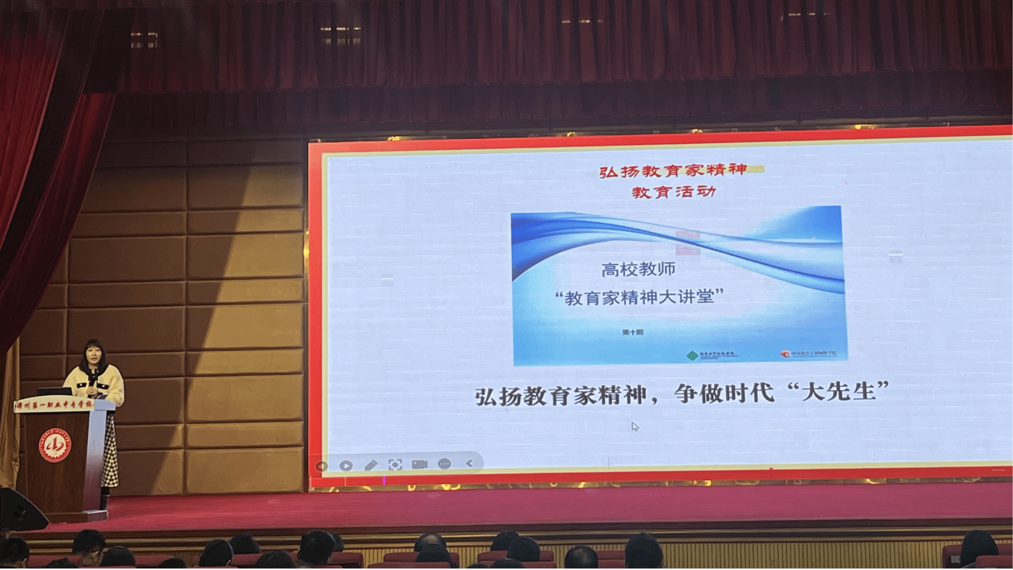 会议还开展了“弘扬教育家精神”师德师风教育活动,全校教师观看了题为《弘扬教育家精神,争做新时代“大先生”》的学习视频,党委委员、办公室主任李燕勉励教师们要弘扬教育家精神,加强业务技能学习,提升教学能力水平,争做“四有好老师”。