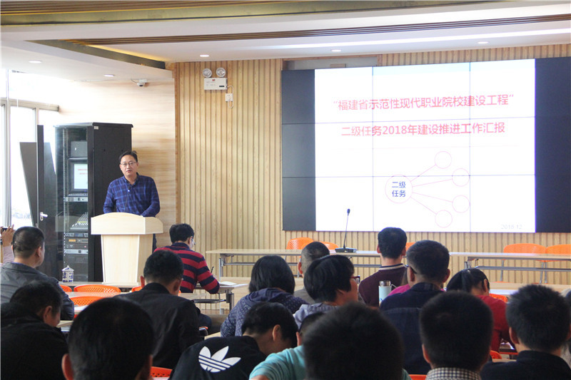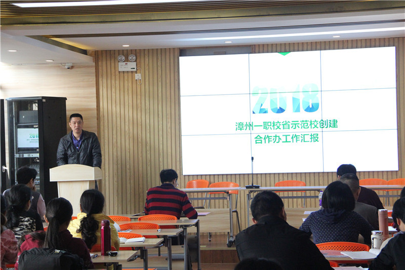 为进一步推进学校2018年省示范校建设进程,12月2日上午,漳州一职校在科学楼二楼荣誉室召开了2018年福建省示范性现代职业院校建设工作推进会。学校领导、核心组成员、财务负责人、创建办全体人员、各二级责任人、各系部主任、各教研组长等参加了此次会议。会议由副校长周建辉主持。