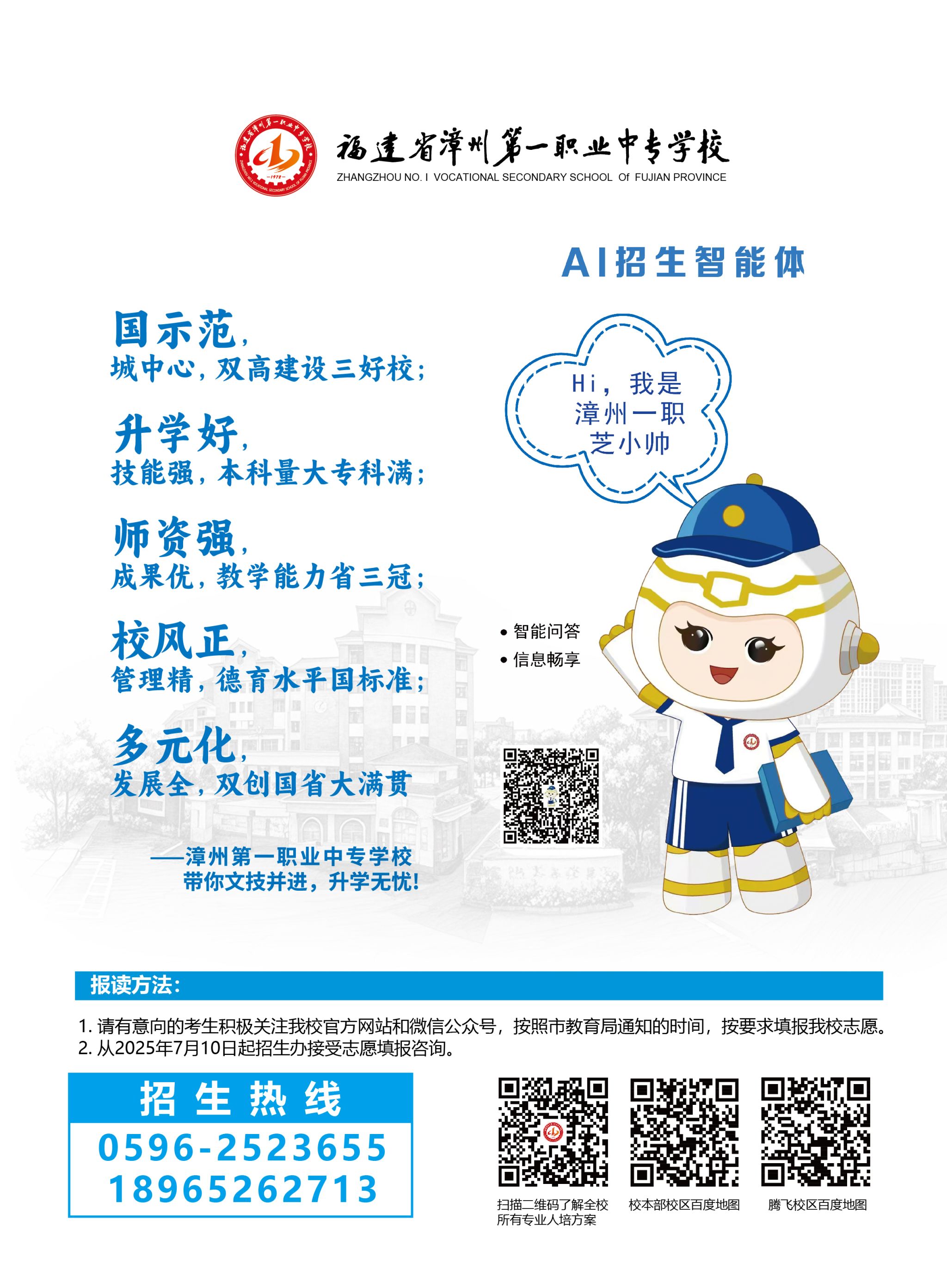 AI赋能招生——漳州第一职业中专学校招生智能体“芝小帅”全天候为您服务
