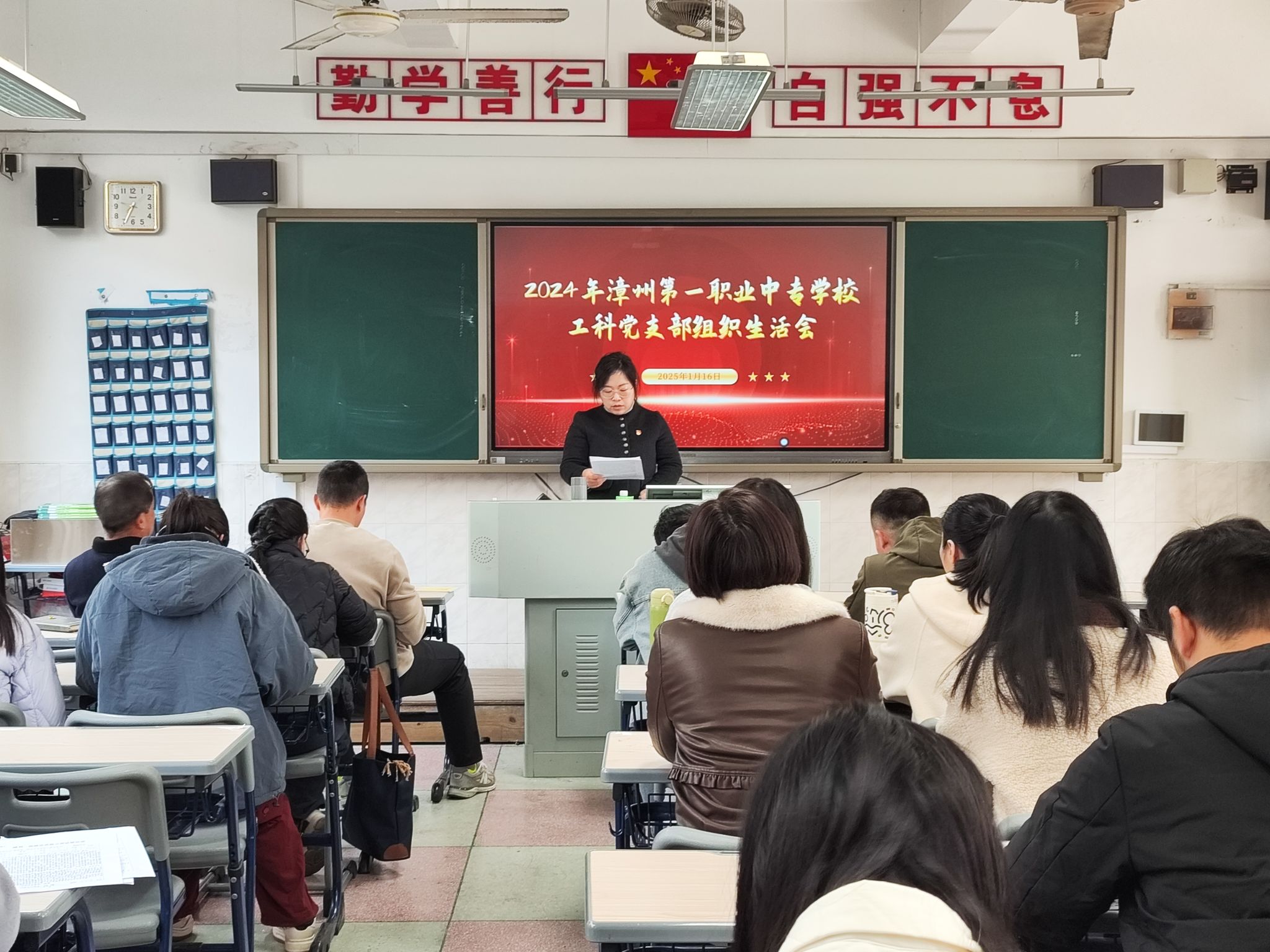 1月16日上午,漳州一职校工科党支部在善行楼召开2024年度组织生活会,会后开展了“民主评议党员”主题党日活动。会议由党支部组织委员阮陈妙同志主持,工科党支部全体党员到会。