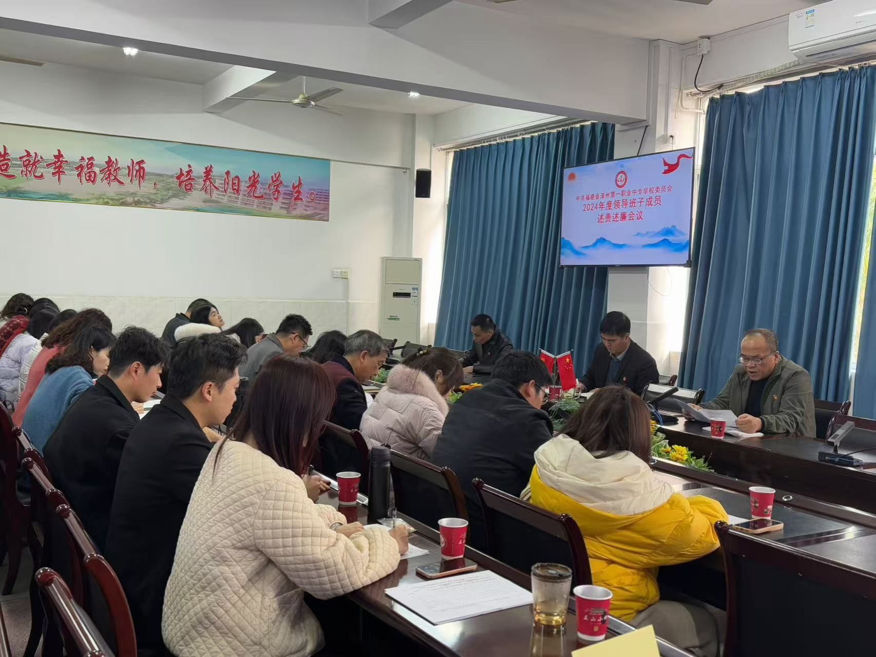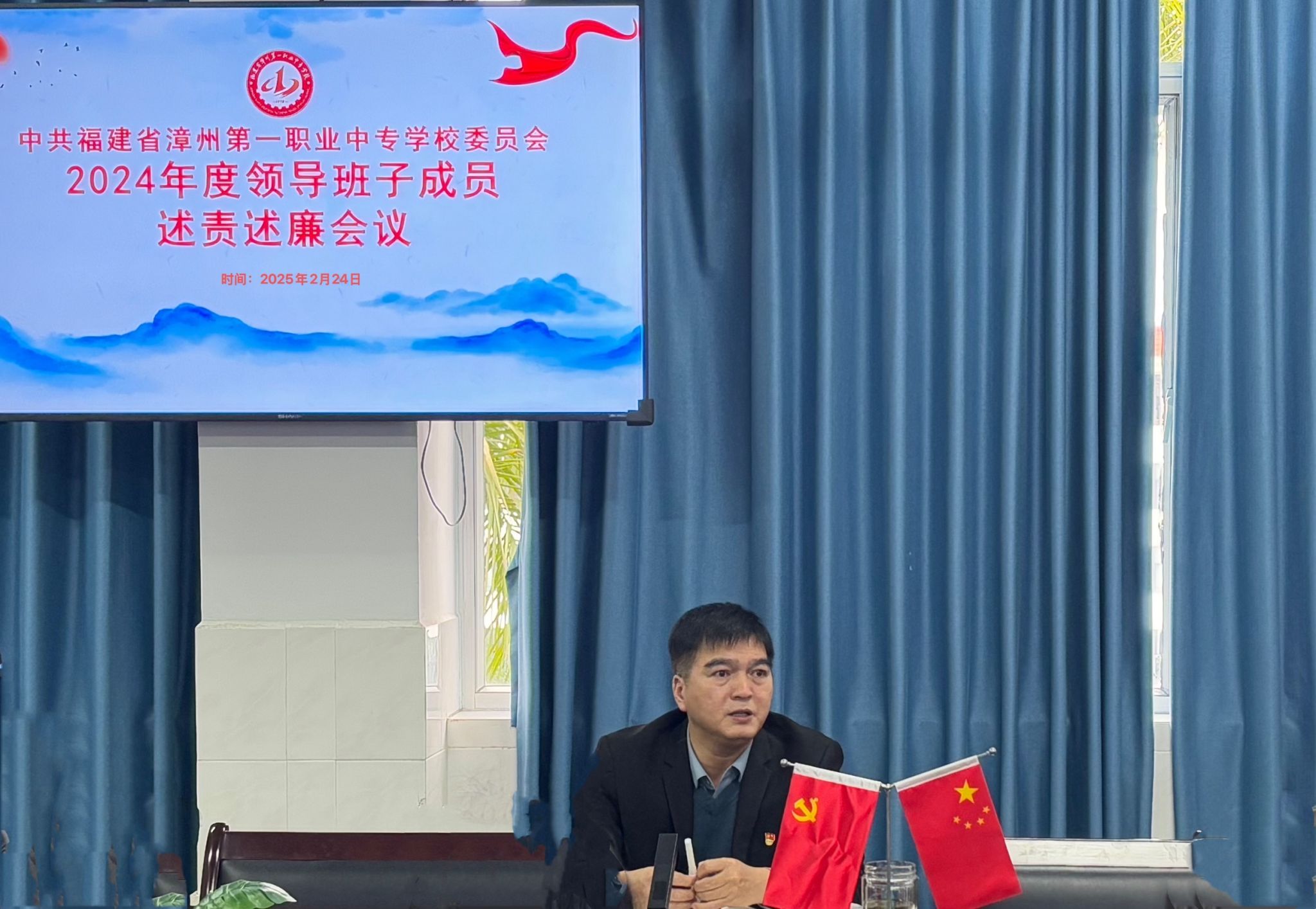 2月24日下午,漳州一职校在科学楼四楼会议室召开2024年度党委领导班子成员述责述廉会。会议由校党委书记王少全主持,校党委领导班子成员、纪委委员,各支部书记和支委及民主党派教师代表参加会议。