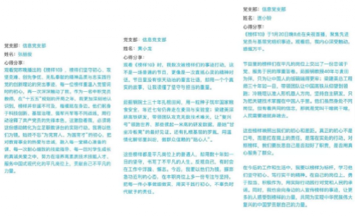 为深入学习贯彻习近平新时代中国特色社会主义思想,充分发挥先进典型示范引领作用,2026年1月20日,信息党支部组织党员教师利用电视、网络等渠道收看党员教育片《榜样10》,并展开线上交流研讨,汲取榜样力量,践悟初心使命,迅速掀起对标榜样、见贤思齐的学习热潮。通过观看学习,党员教师们深受教育和鼓舞,纷纷表示要以榜样为镜、向榜样看齐,在教育教学岗位上践行初心使命,为职业教育高质量发展贡献力量。