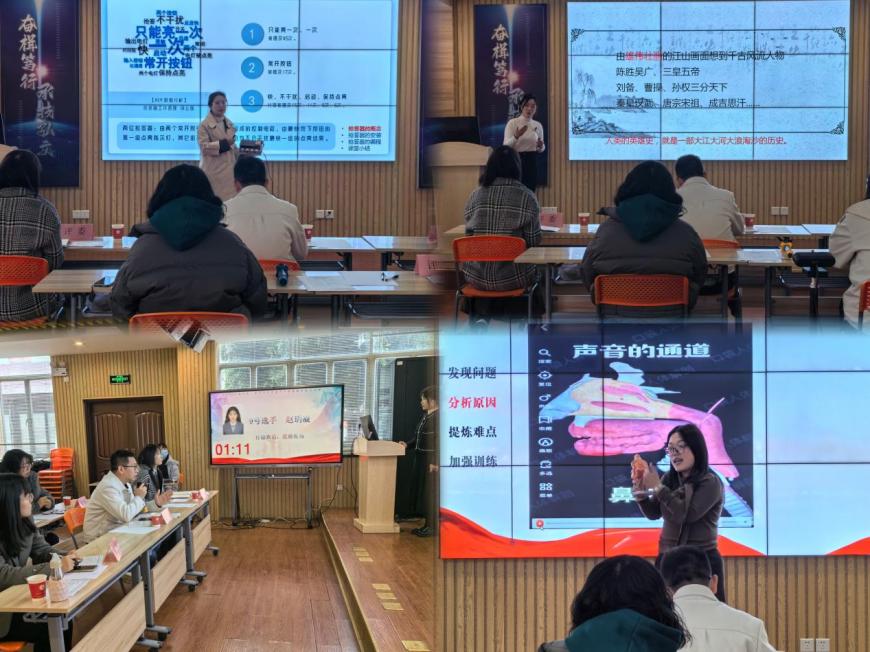 自比赛通知发布以来,参赛教师们都全身心投入备赛工作,与指导老师不断探讨、交流,围绕课程教学大纲,结合课程思政,创新教学设计和课堂教学模式,对每个环节反复打磨、改进,通过多样化的设备设施和丰富生动的图片、文字、音视频等多媒体及校园数字化平台等多种信息化手段突破教学重难点。在无生教学片段的课堂呈现中,参赛教师们课堂组织张弛有度、收放自如,富有感染力,语言表达清晰准确,教学过程设计合计,教学实施吸引眼球,彰显出了我校青年教师饱满的精神面貌和各具魅力的教学风格。在答辩环节,参赛教师们思路清晰,解答明确,充分展示了教学魅力及教学风采。五位评委仔细聆听并就参赛教师的参赛作品、现场片段教学和答辩进行了中肯的点评与指导。