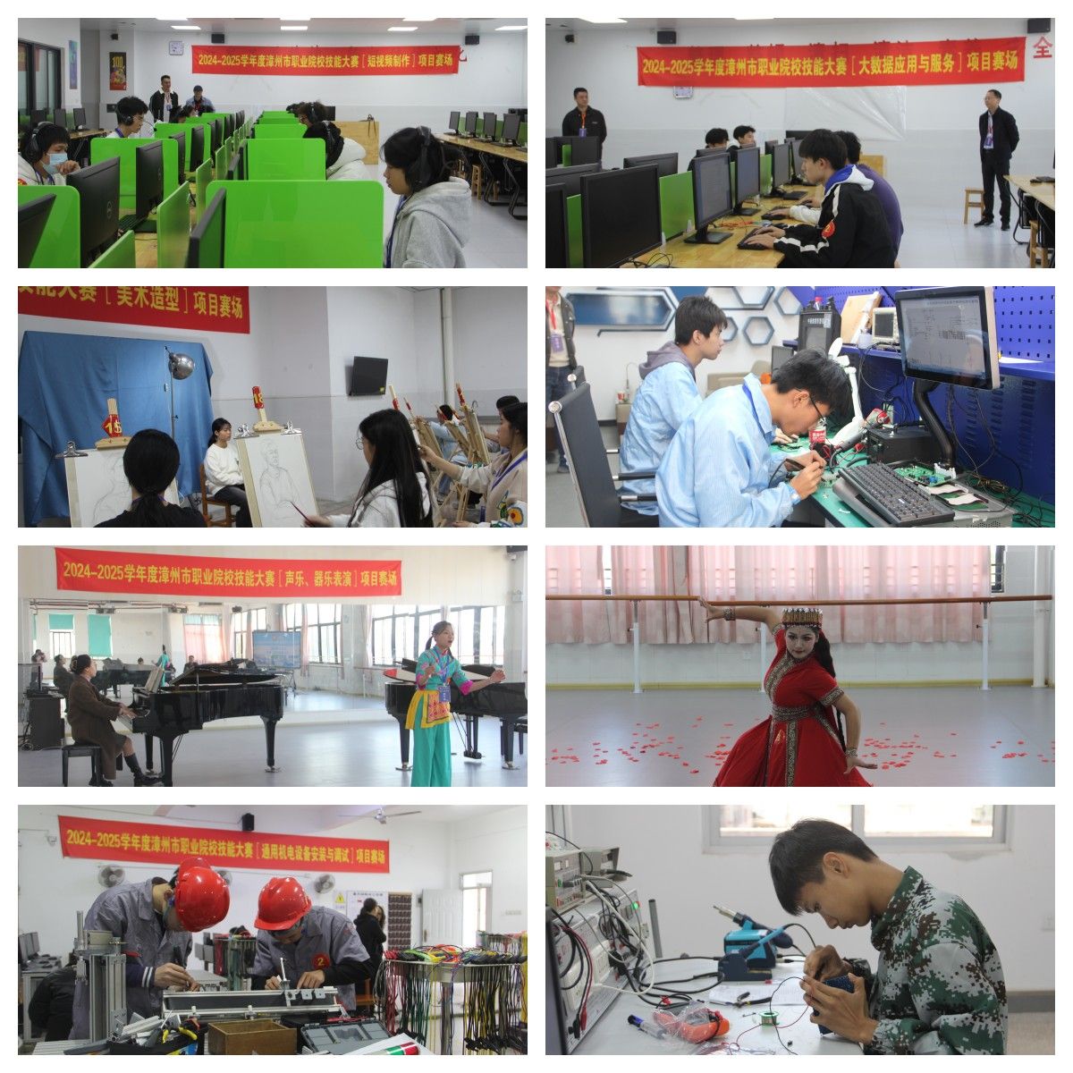 为深化现代职业教育体系建设改革,加快推进全市职业教育高质量发展,切实提高职业教育办学水平和人才培养质量,2024-2025学年度漳州市职业院校技能大赛于11月29日至12月1日举办。漳州第一职业中专学校承办此次大赛的8个赛项,比赛项目包括电子产品设计与应用、通用机电设备安装与调试、美术造型、舞蹈表演、声乐器乐表演、数字产品检测与维护、短视频制作、大数据应用与服务等,共有105名参赛选手参加比赛。