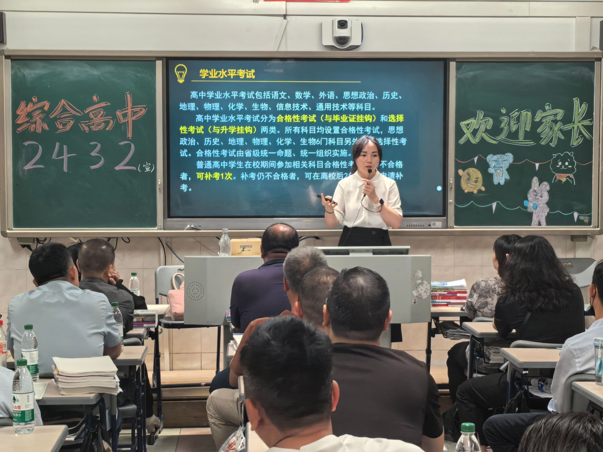 会议第二阶段,由各班班主任带领家长们移步到教室召开班级家长会。班主任根据本班的实际情况,就班级工作、学生在校的点滴成长情况及家校共育的方法等方面与家长们进行了细致的分享与探讨。各科任老师也从学科特点、能力要求及适配专业方向等内容向家长进行介绍。会后家长们纷纷表示,此次会议不仅解开了他们对高考政策的困惑,还提供了具体的评估方法,对孩子选科很有指导意义。
