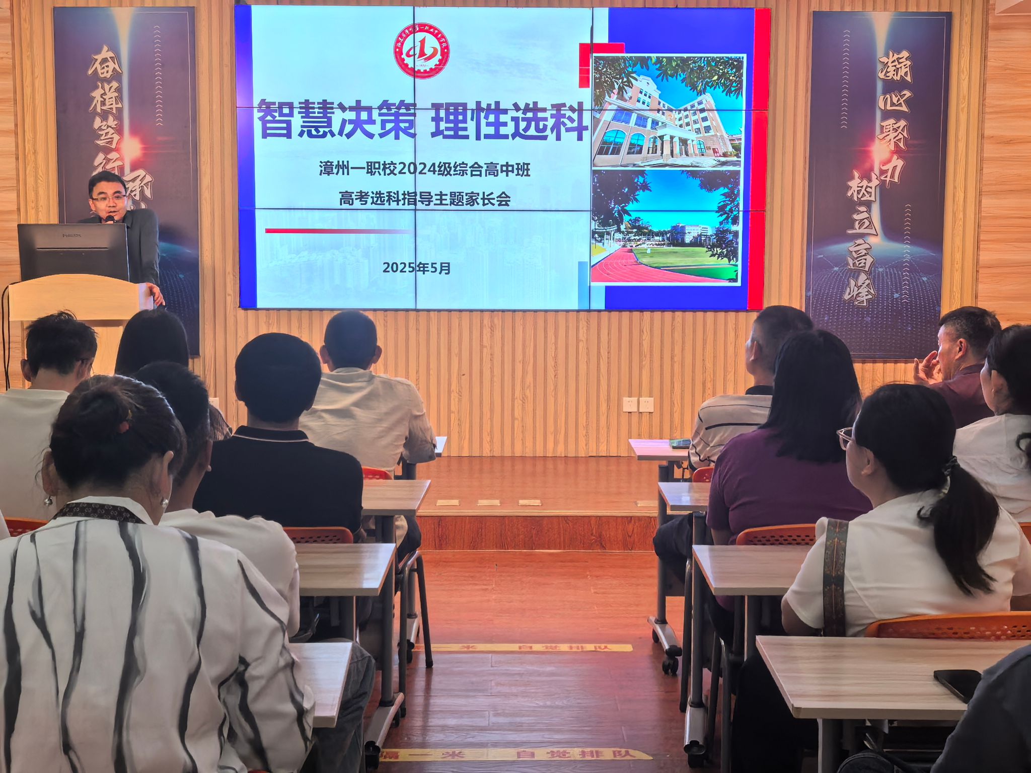 为进一步加强家校之间的联系与沟通,帮助家长和学生科学规划高考选科,明确未来发展方向,5月8日晚,漳州一职校在荣誉室召开2024级综合高中班家长会。参加会议的有校长方祝英,副校长、教务处主任沈湖拱,综合高中部负责人连小铃、综合高中班班主任和所有学科任课教师及24级综合高中班全体学生家长,会议由副校长沈湖拱主持。本次会议重点围绕新高考政策解读、学科特点分析、选科策略指导等内容展开。