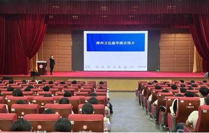 宣讲会上,福建信产跨境电商科技有限公司的杨滨平经理向在场师生介绍了公司在跨境电商平台TEMU的半托管业务、“人才优先”的企业文化以及行业内的就业趋势和前景,并为在场学生详细介绍了公司的招聘计划、要求和福利待遇等方面的信息,帮助学生更好地规划自己的职业生涯。杨总经理指出,随着数字化、智能化和网络化时代的蓬勃发展,电商行业将会迎来更多的机遇和挑战,他鼓励同学们不断提高自己的综合素质和适应能力,以更好地应对未来的就业市场。在会上,同学们积极参与提问,表现出了极高的热情。随后,万达嘉华酒店的人事代表为在场师生介绍了酒店的企业文化,包括酒店的使命、愿景、核心价值观和企业精神等,以及当前岗位需求情况,包括各种职位的基本技能要求、薪资待遇、晋升机制等信息。同时也分享了当前酒店行业的发展动向,包括消费者需求变化、技术、市场竞争等方面的趋势,以及对未来人才需求的预测,使学生进一步认清就业形势,端正就业心态。