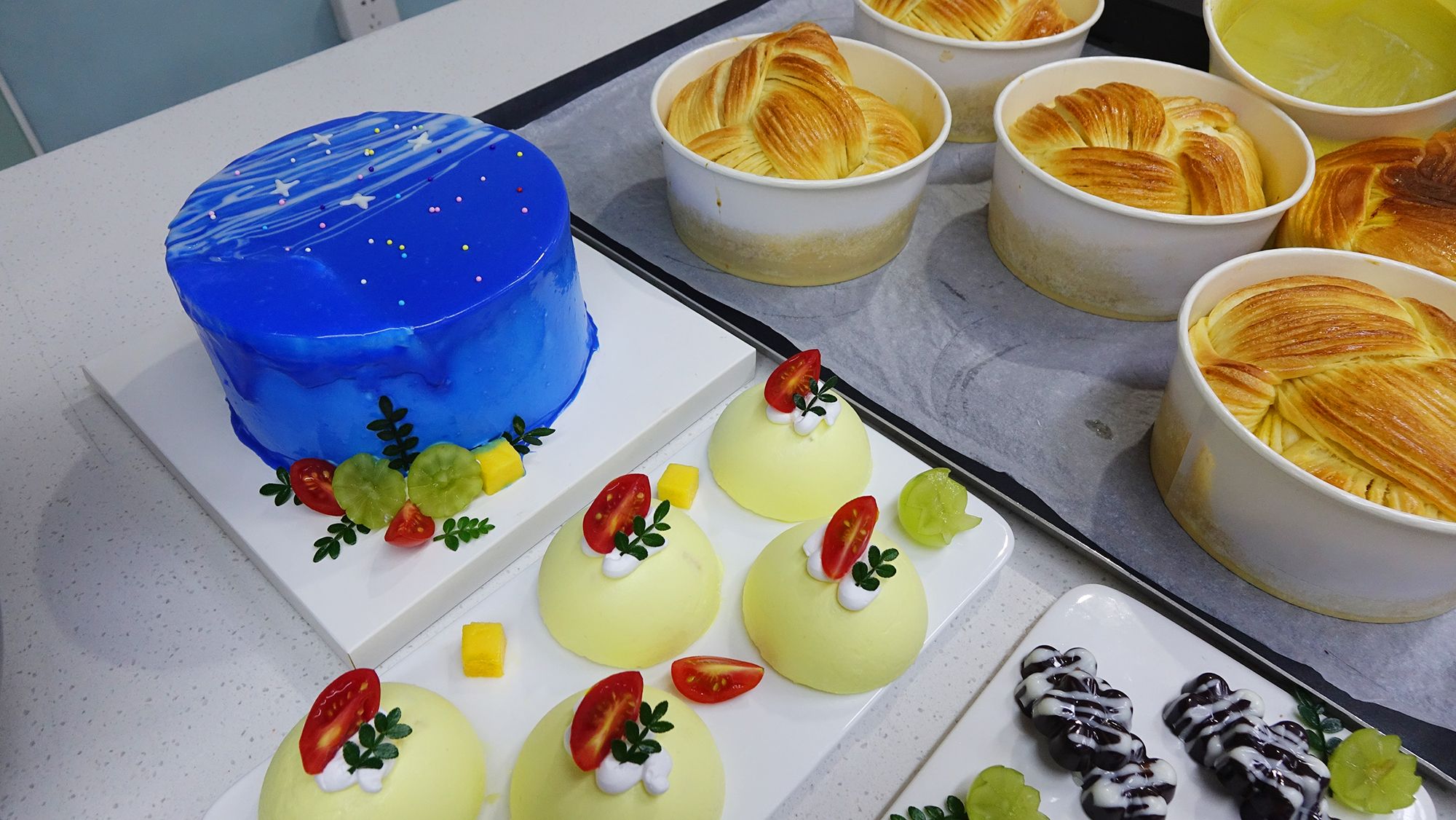 实操考核过程中,考生们展现出了扎实的专业技能和出色的创新能力,许多考生的作品在外观、口感、工艺等方面都达到了较高的水平。我校组织了专业的考评员对考生的作品进行细致评审,考评员根据西式面点的外观、口感、创意以及制作技巧等方面进行综合打分,并给予了专业的指导和建议。