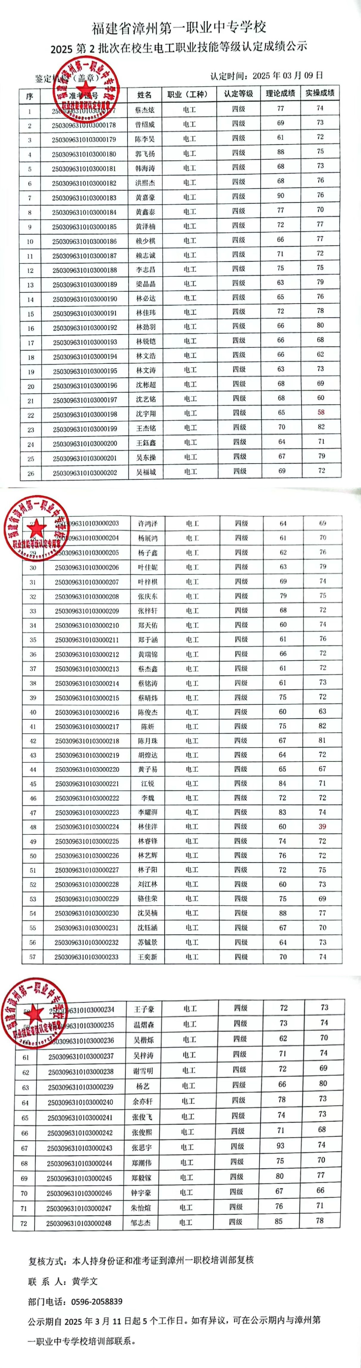 上一条:福建省漳州第一职业中专学校2025年第3-7批次在校生保育师、西式面点师、中式烹调师职业技能等级认定成绩公示