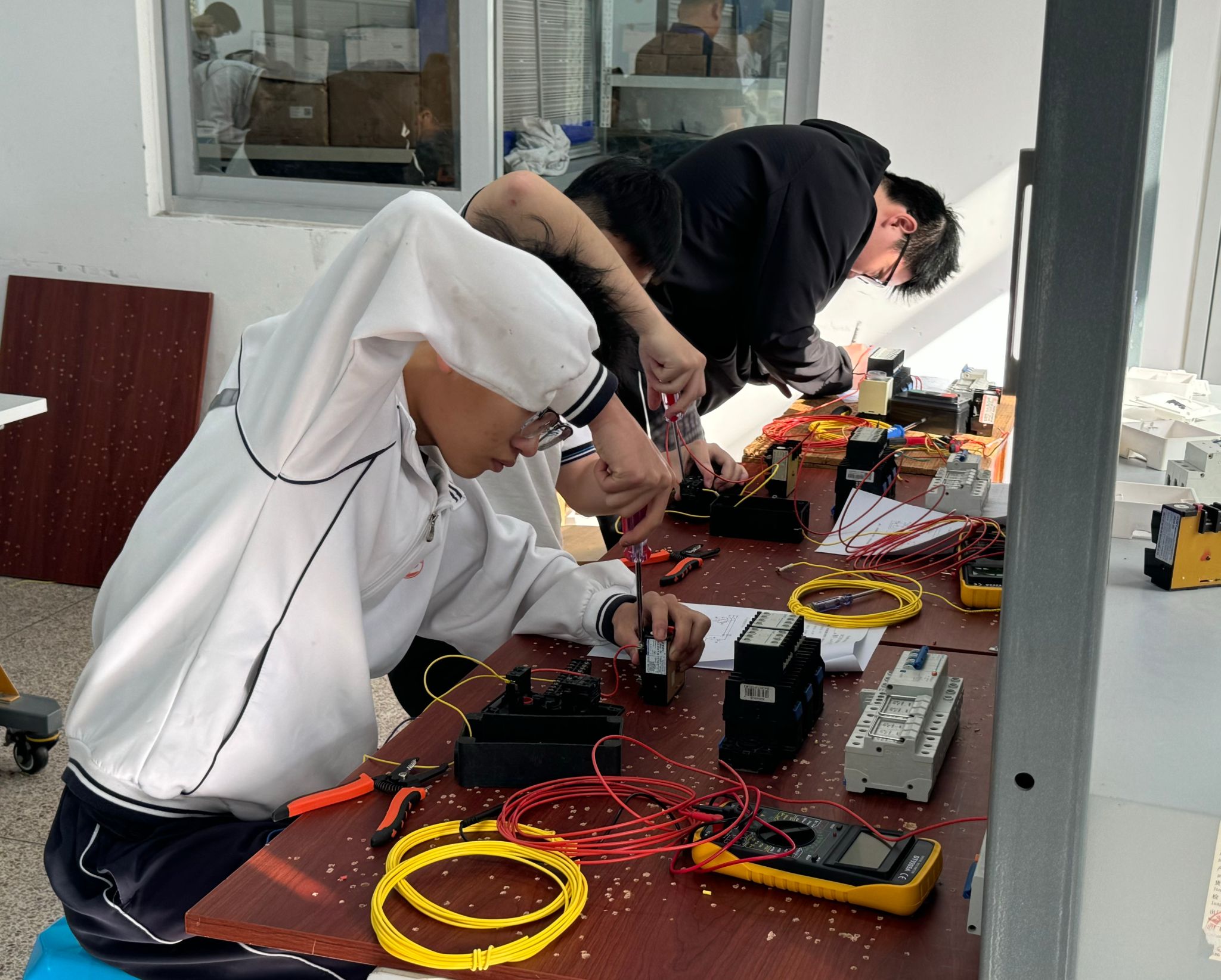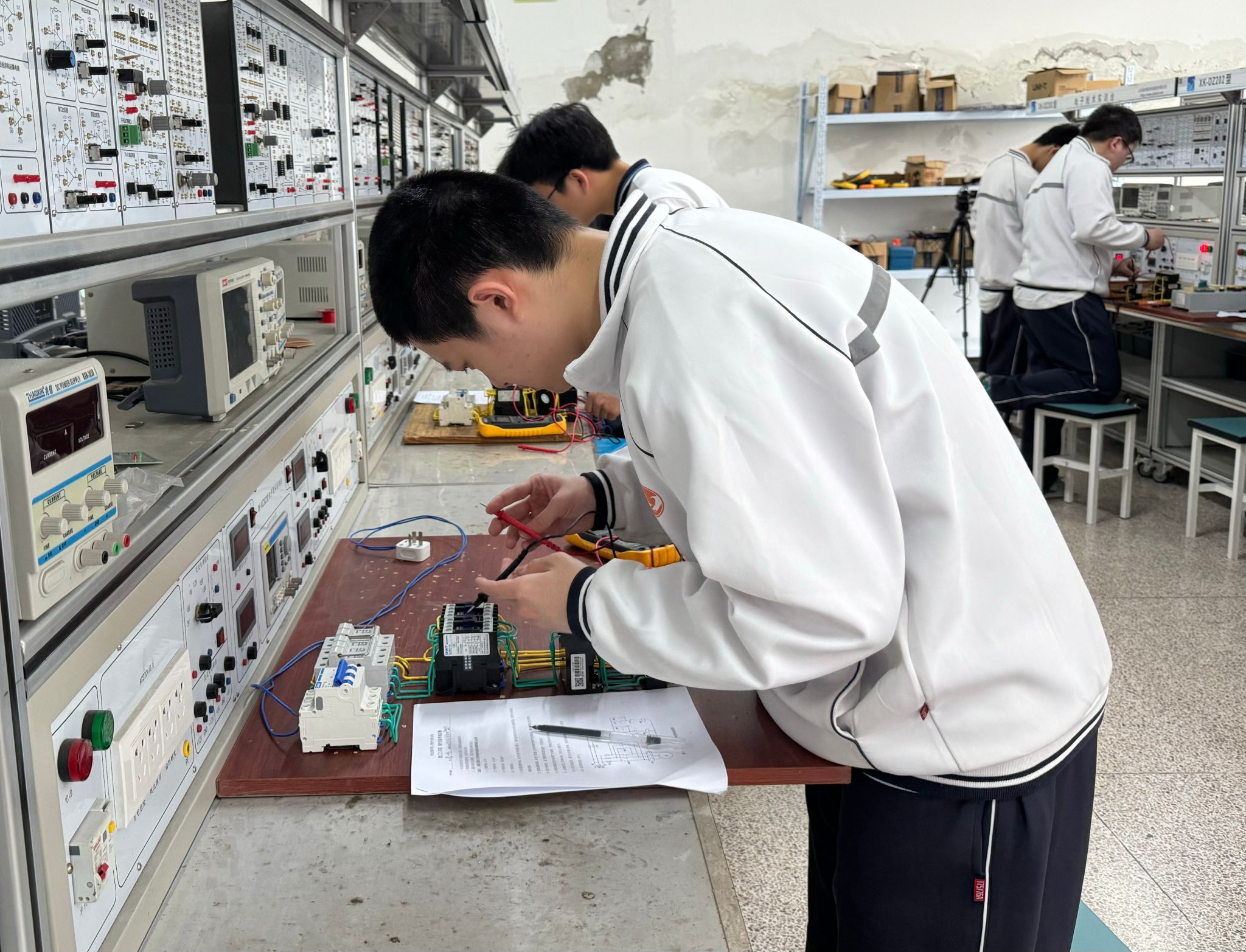 认定期间,参加技能等级认定的电工电子系学生精神饱满,有序进入考场。在操作技能考核环节,学生们沉着冷静,认真作答,将日常所学所练倾注于实践操作之中。从安全规范的用电操作、电气线路的精准安装与调试,到电气设备故障的快速诊断与排除、仪表仪器的熟练使用,同学们全神贯注、动作娴熟,一丝不苟地完成每一项考核任务,充分彰显了漳州一职专学子精湛的专业技能、严谨的职业素养和良好的心理素质。