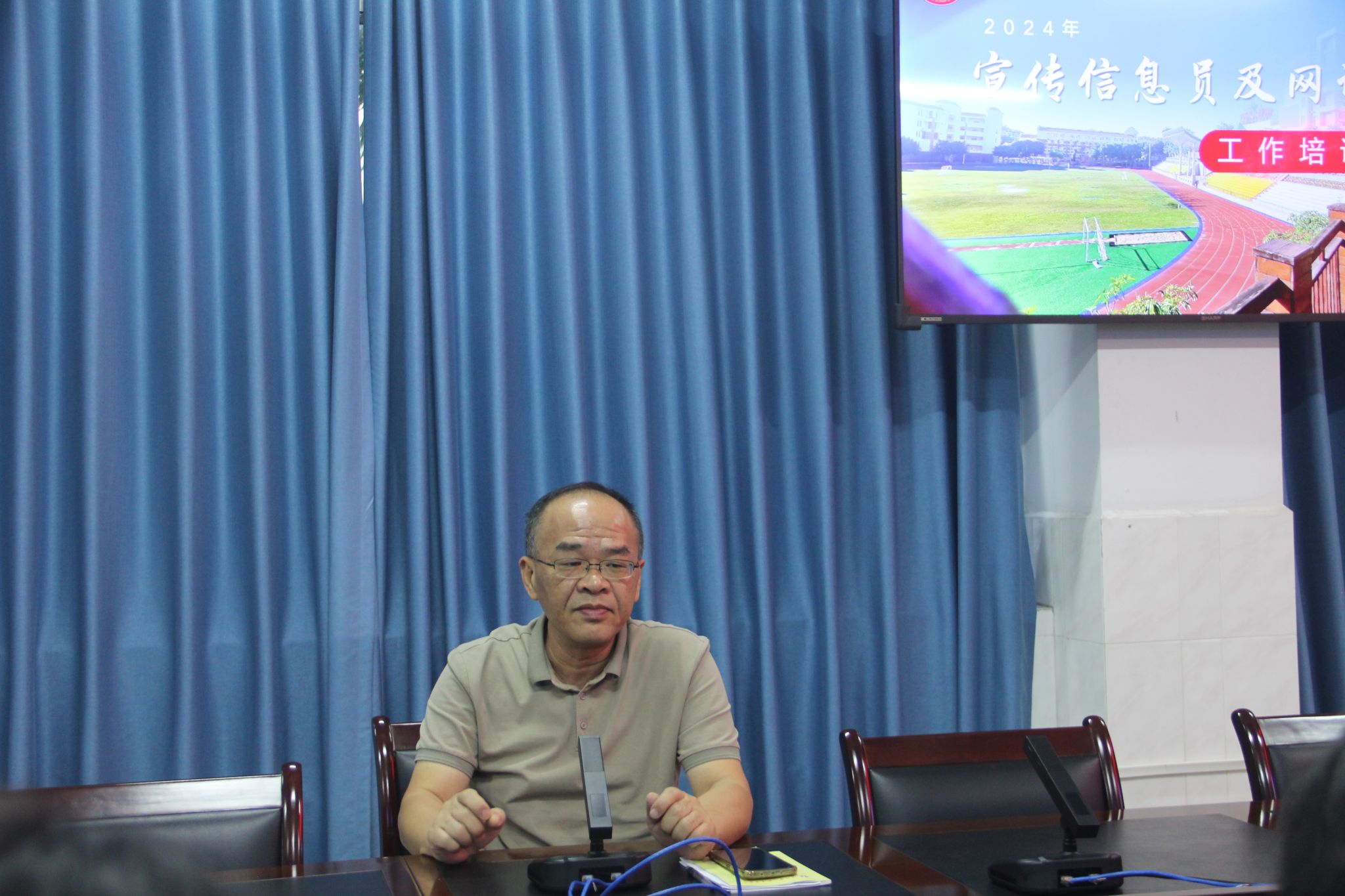为学习贯彻习近平总书记关于网络安全工作重要指示精神,提升宣传信息员和网评员队伍的业务能力和综合素质,10月29日下午,漳州一职校在科学楼四楼会议室召开2024年宣传信息员及网评员工作培训会。校党委副书记王长福出席会议并讲话,各部门宣传信息员及网评员,创建办和信息中心全体教师参加培训。