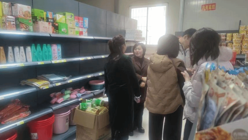 在学生服务部,校领导及总务处人员检查了各类食品的保质期和标签标识等,查看了部分进货票据,要求经营者严格遵守食品安全法律法规,切实保障学生的饮食安全。