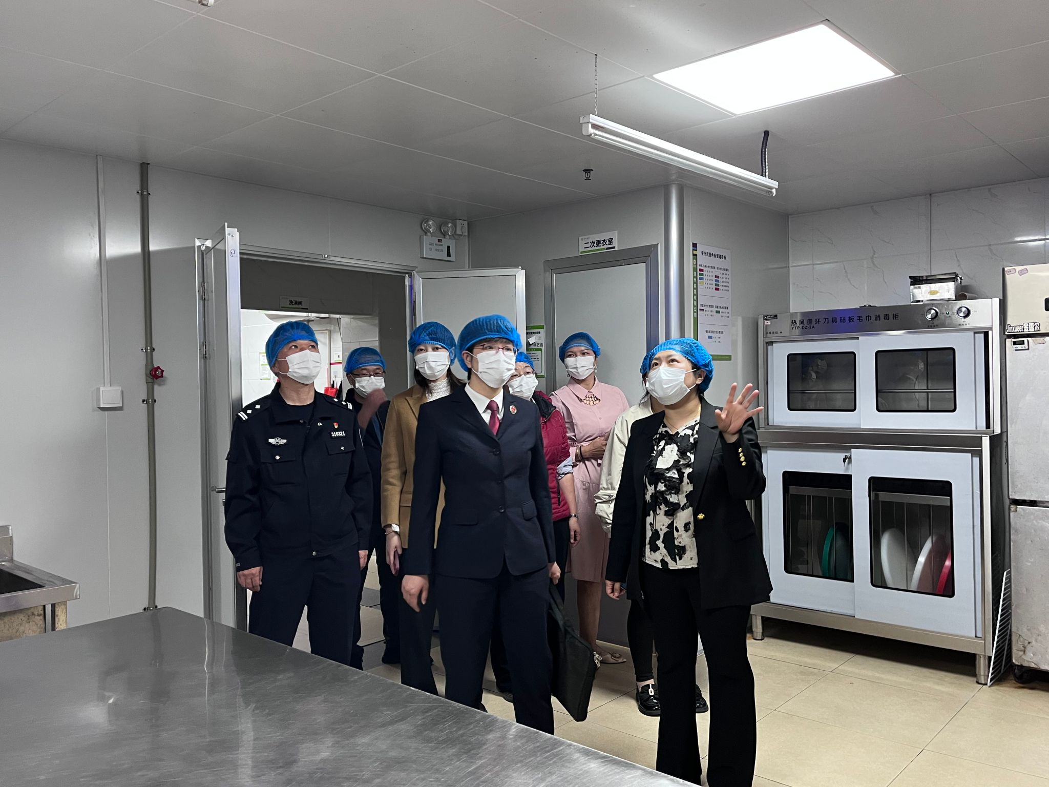 接下来,来宾们在学校相关负责人带领下,实地参观了学校食堂就餐区、食材储存间、加工操作间、清洗消毒间等区域,零距离感受校园食品安全质量提升的实际效果。