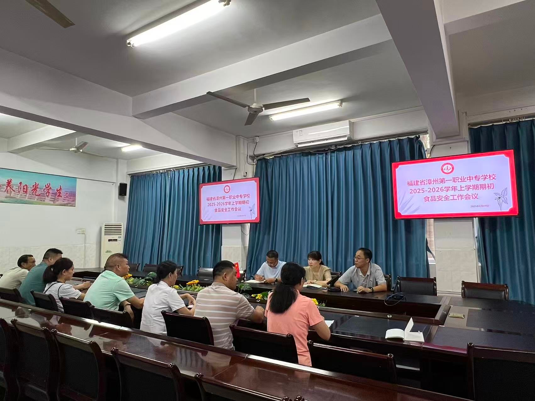 金秋送爽,丹桂飘香,新学期如约而至。为切实保障全体师生用餐安全,为进一步强化学校食品安全管理,8月27日,漳州一职校开展2025—2026学年上学期学期初食品安全工作会议。会议由总务处副主任杨欢主持,李燕副校长出席会议并发表讲话,总务处林世雄老师、各食堂安全员、食堂安全管理员和食堂委托经营方代表等参会。